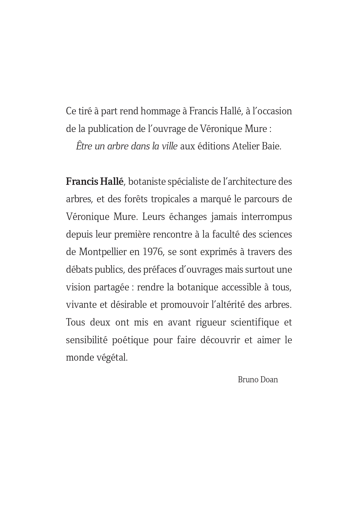 Francis Hallé pour une conférence* écrit :
